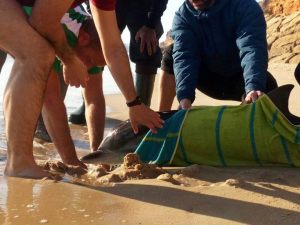 SALVAMENTO DE 3 DELFINES VARADOS