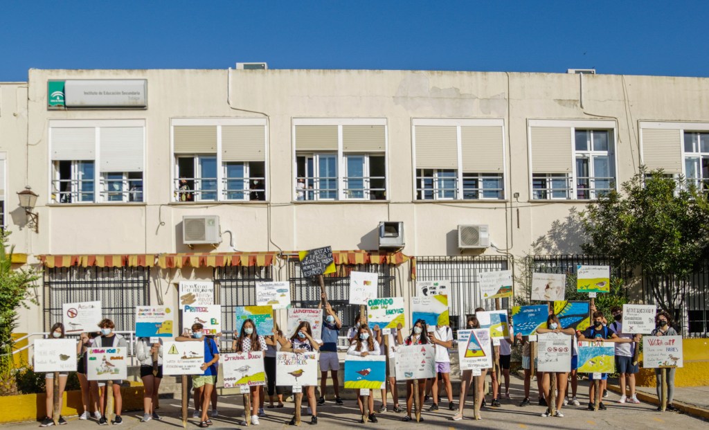 Campaña SOS Chorlitejo patinegro en La Janda, alumnos del Ies Trafalgar.