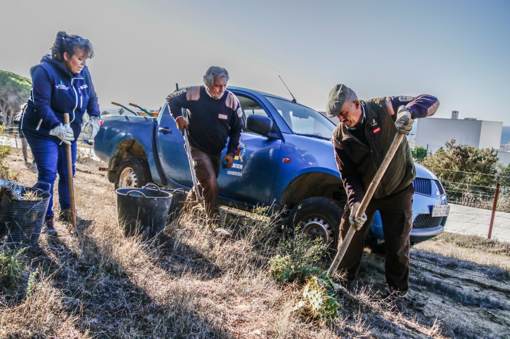 Exitosa Jornada de retirada de planta exótica-invasora en el Parque Natural de La Breña, Los Caños de Meca.